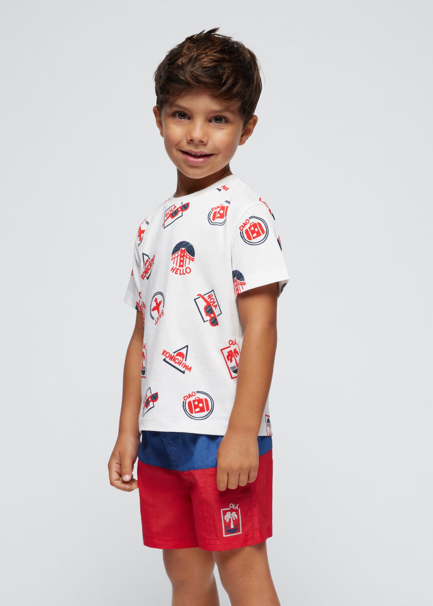 Polo manica corta bambino Mayoral stampa "Hola" rosso anguria