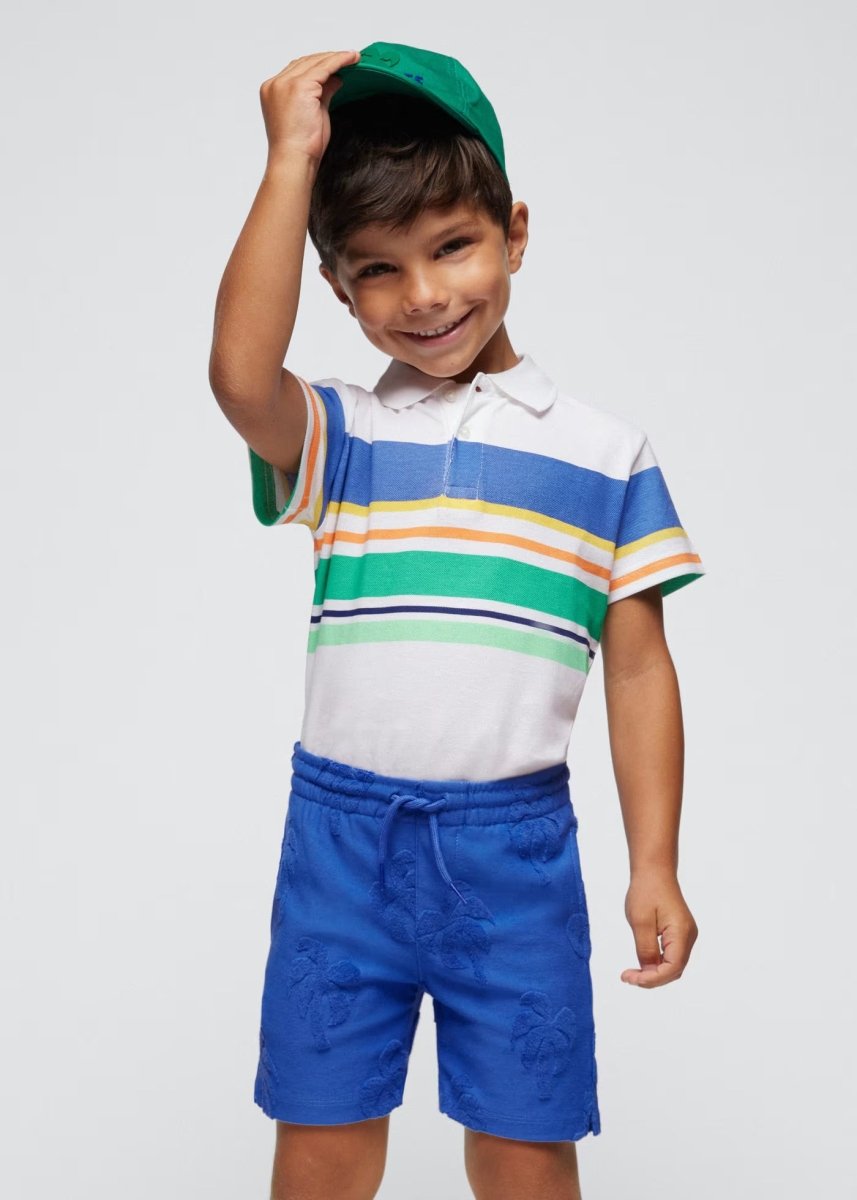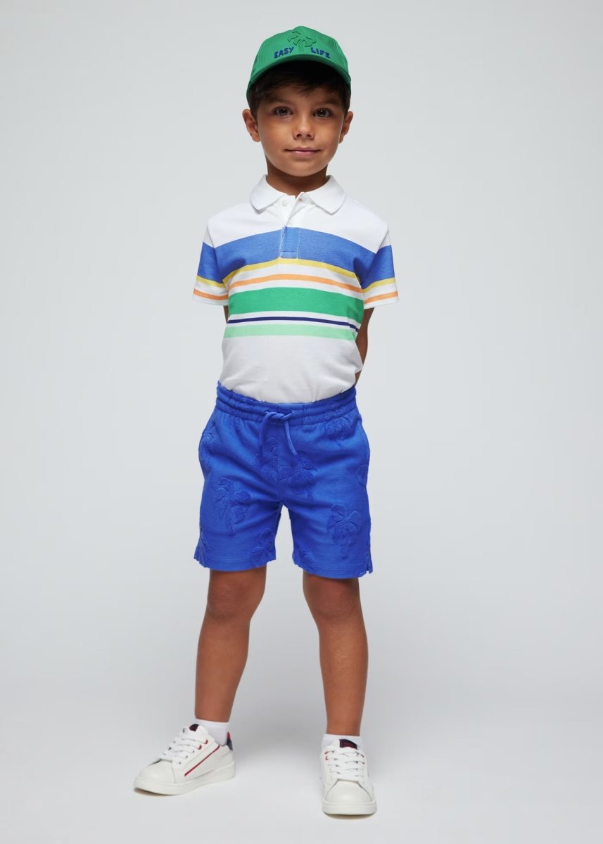 Polo manica corta bambino Mayoral palme bassorilievo blu