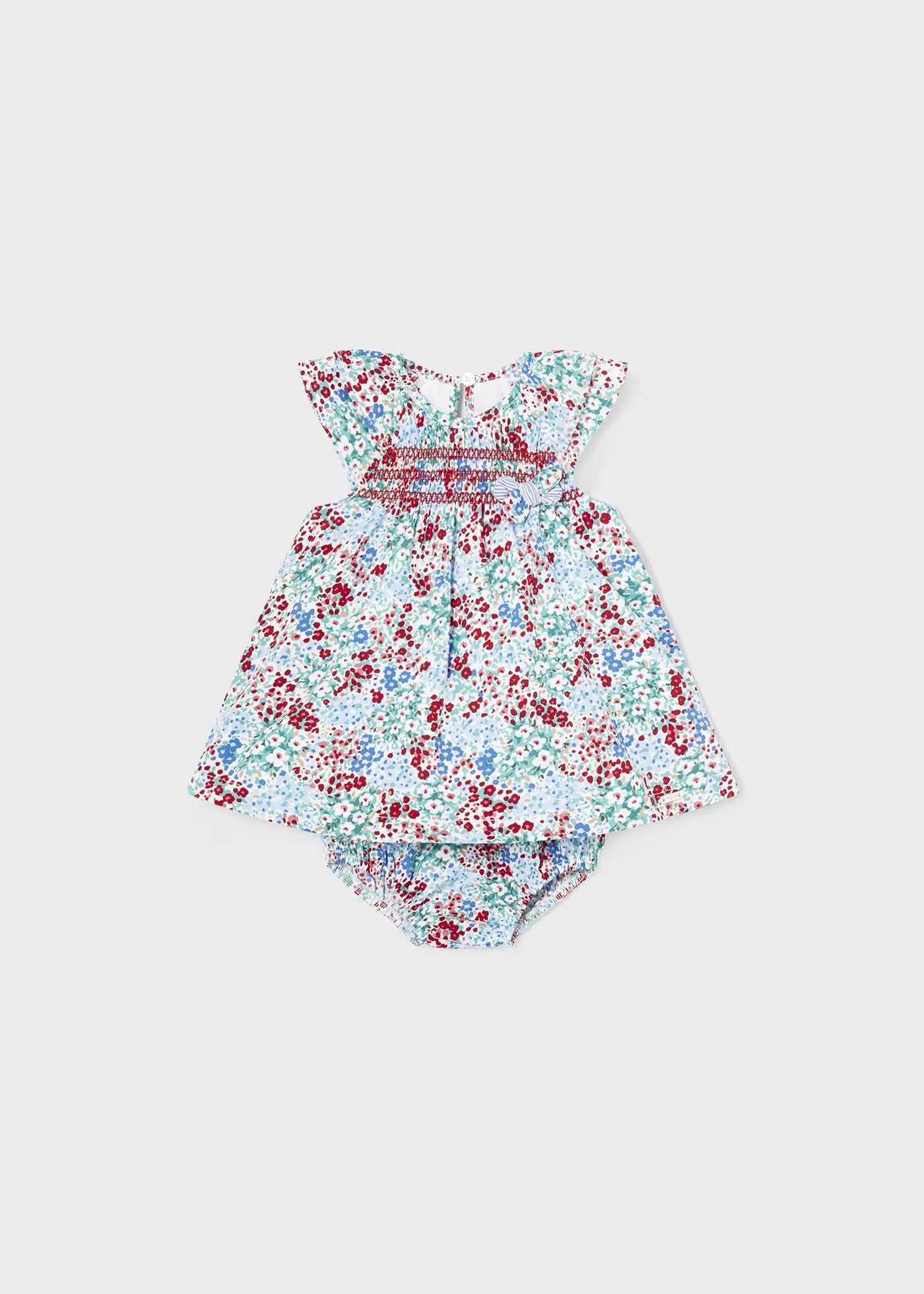 Vestito con copri pannolino neonata Mayoral Newborn azzurro-rosso floreale