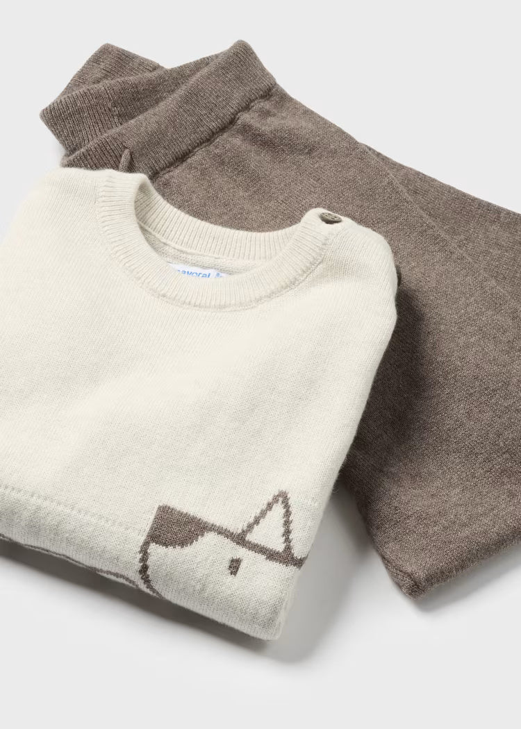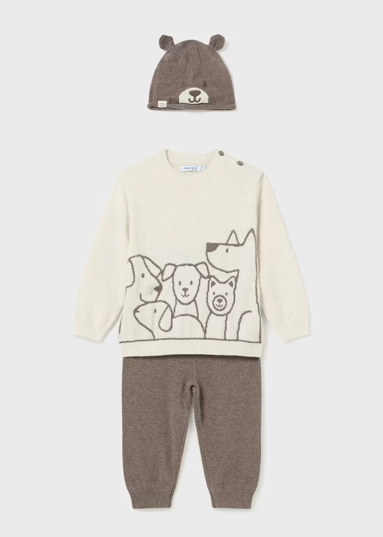 Completo cappello 3 pezzi neonato Mayoral in filo "Cani"