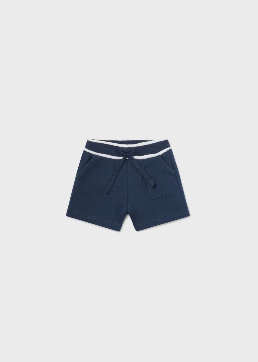Pantalone corto modello shorts per neonato. Cintura con cordoncino interno regolabile. Tasche funzionali nella parte anteriore e posteriore del capo.