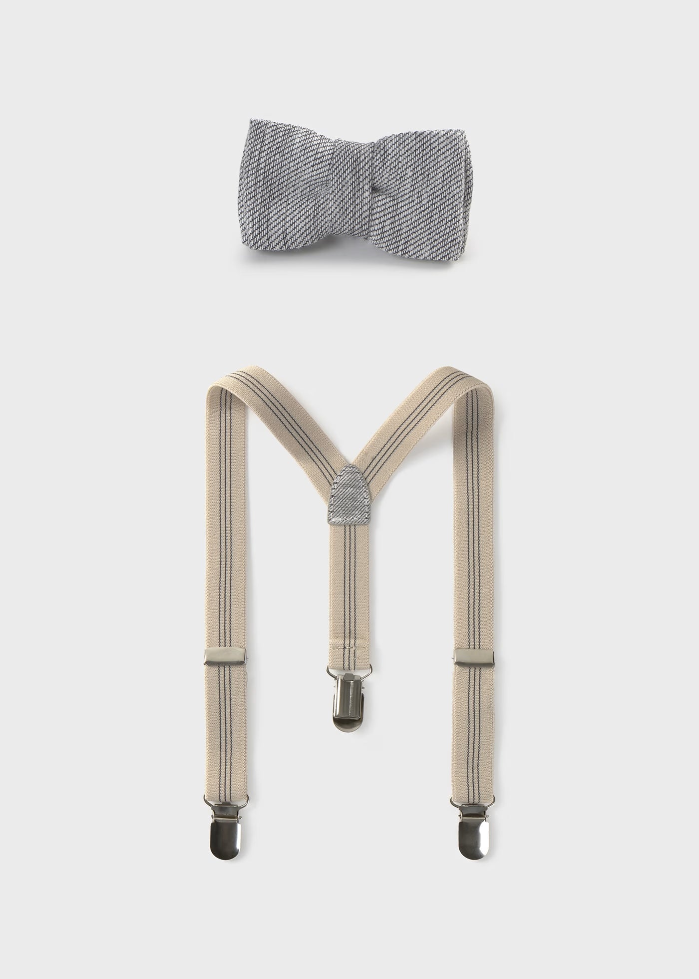 Set bretelle e papillon neonato Mayoral grigio e beige