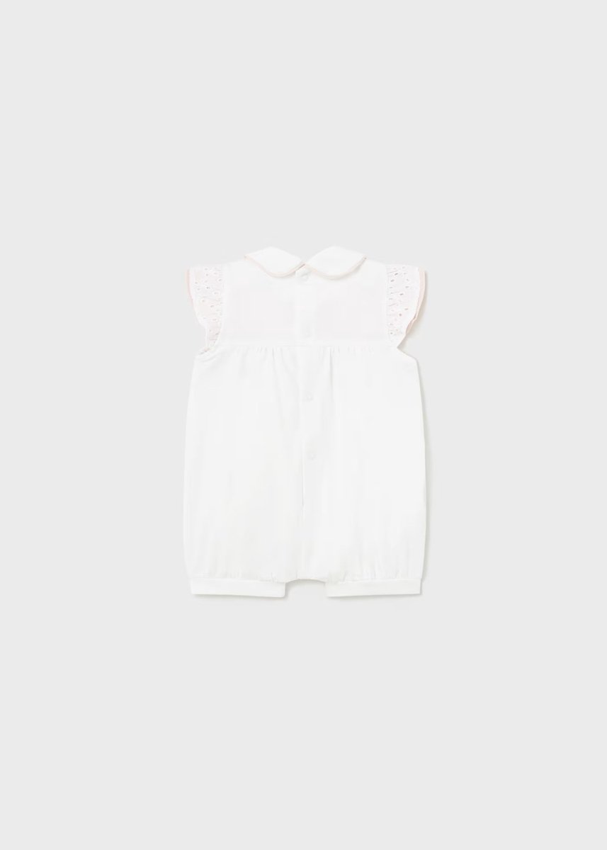 Pagliaccetto con colletto neonata Mayoral Newborn bianco-rosa traforato