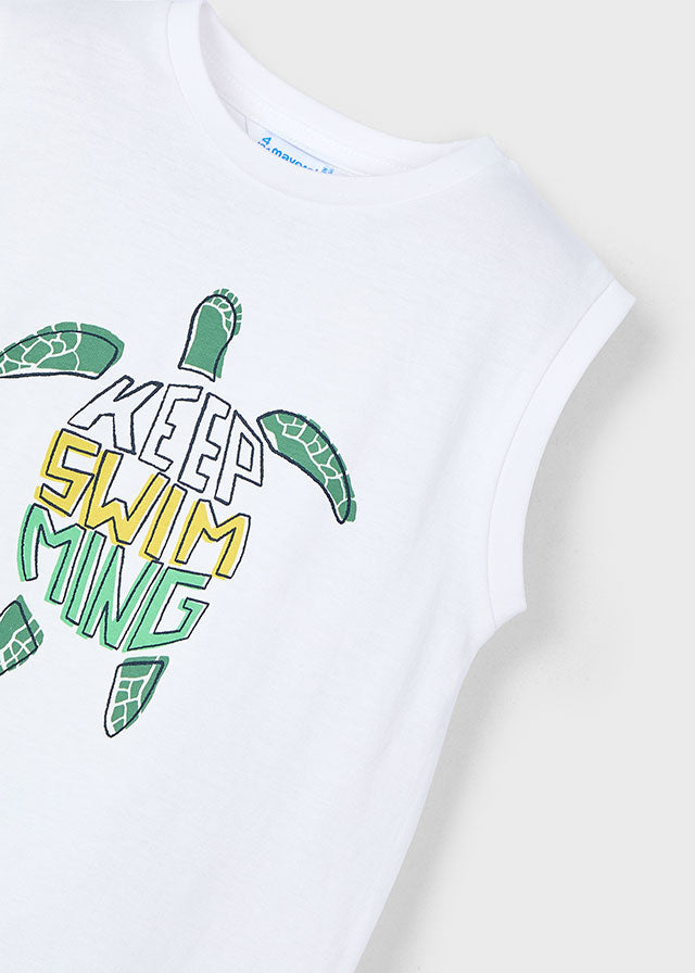 Canottiera bambino Mayoral bianca stampa Tartaruga