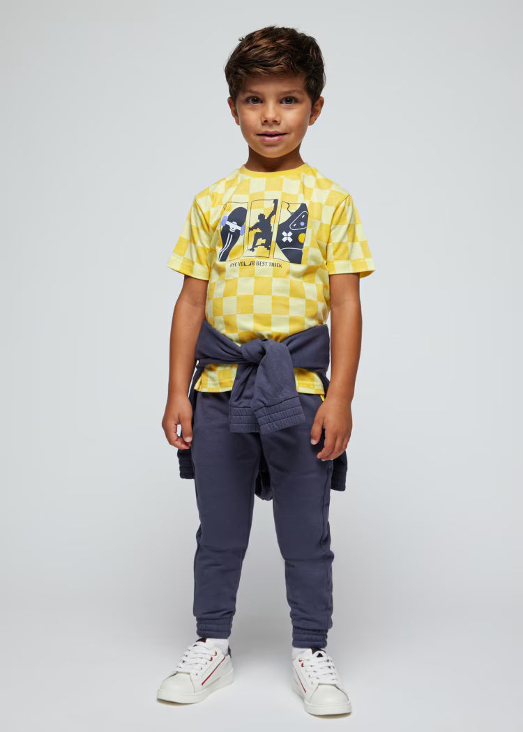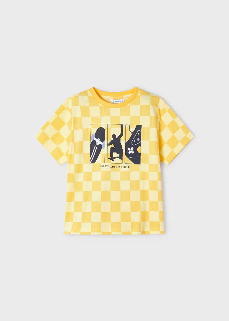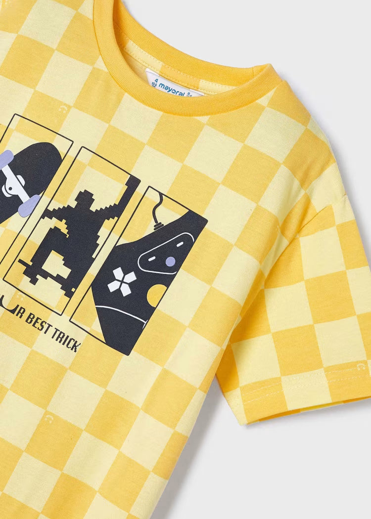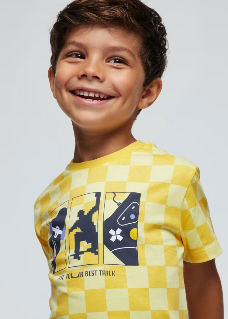 T-Shirt bambino Mayoral stampa "Best trick" giallo quadri