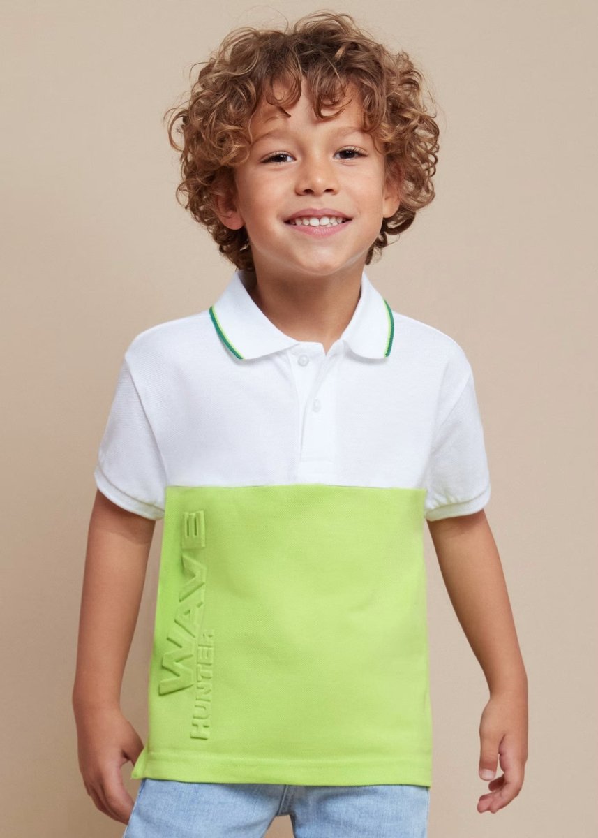 Polo manica corta bambino Mayoral blocchi verde-bianca