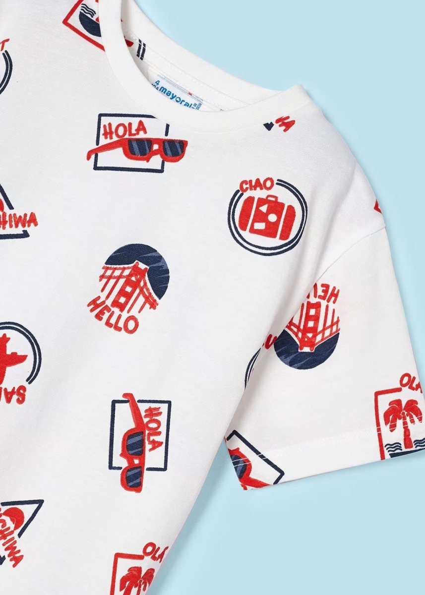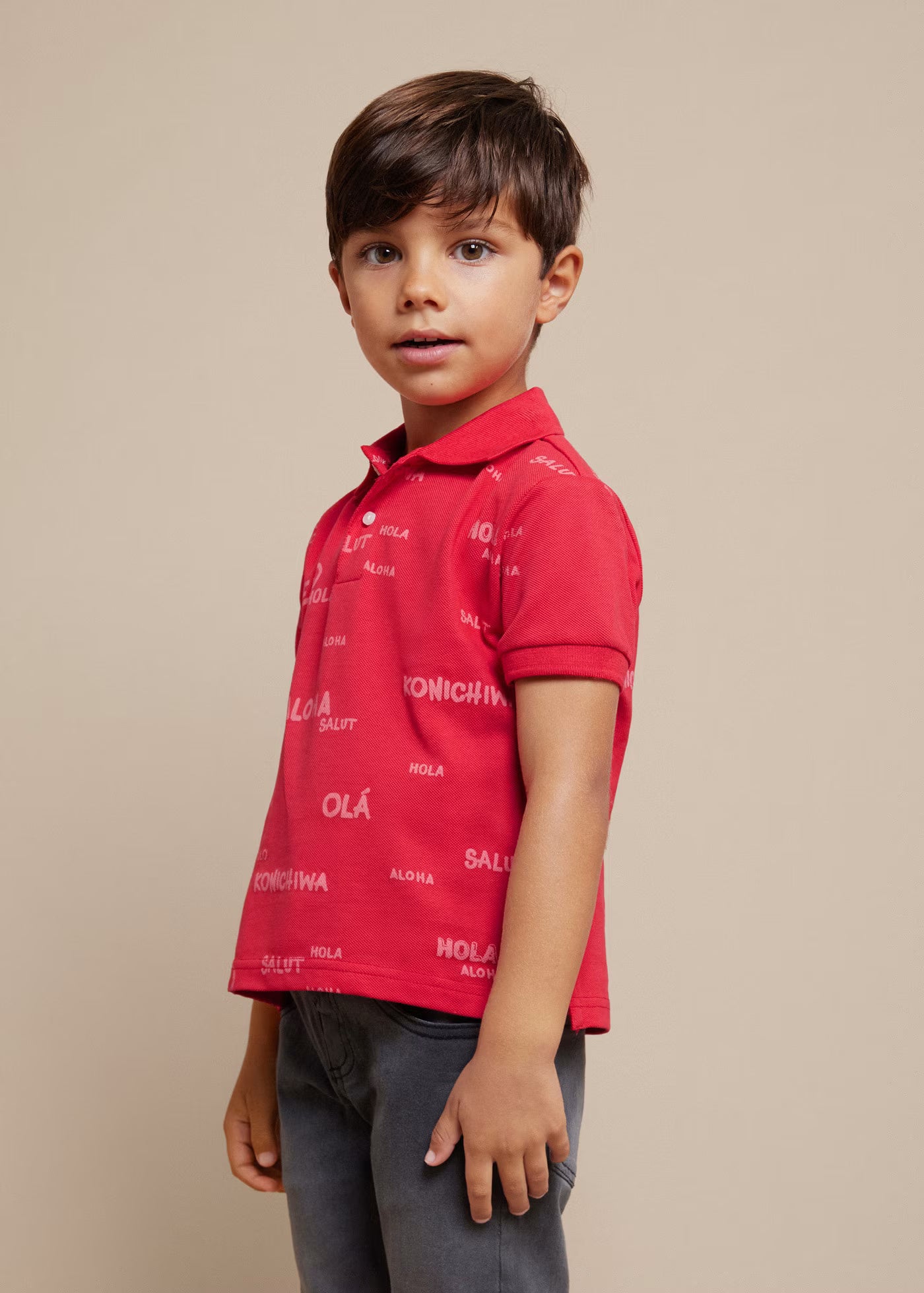 Polo manica corta bambino Mayoral stampa "Hola" rosso anguria