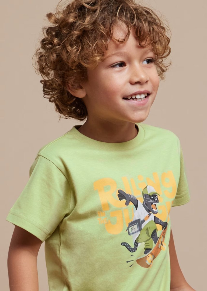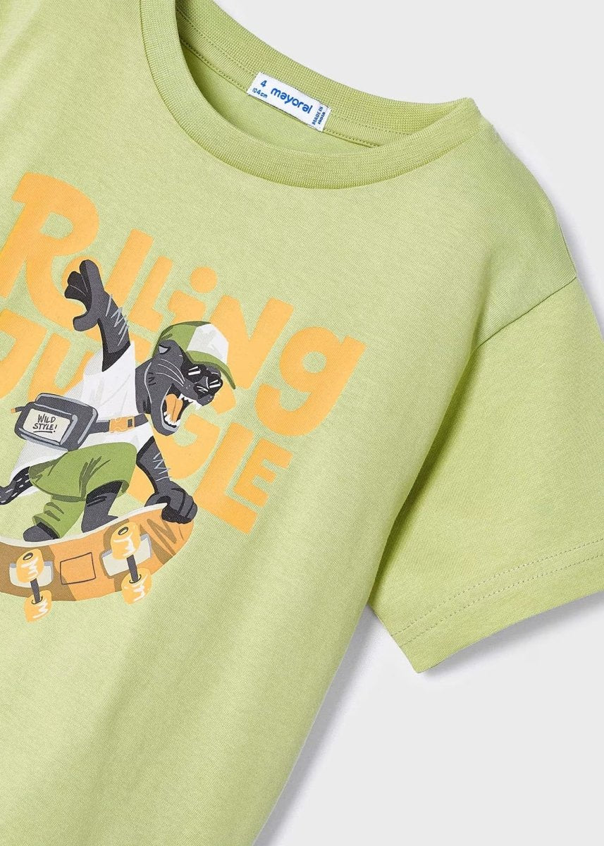 T-Shirt bambino Mayoral stampa "ROLLING JUNGLE" verde