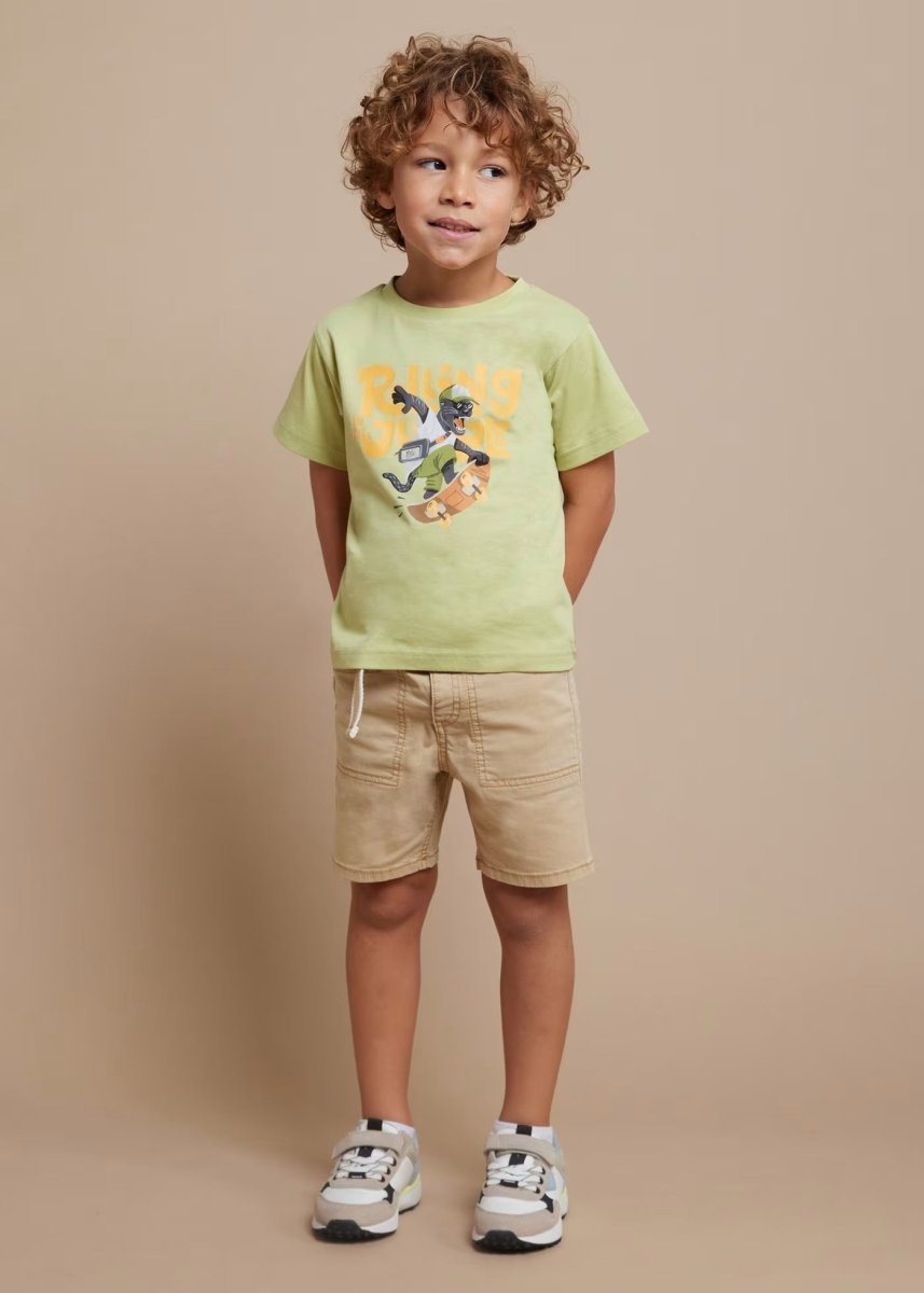 T-Shirt bambino Mayoral stampa "Teddy Skate" beige