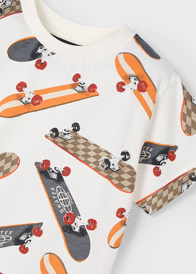 T-Shirt bambino Mayoral stampa Skateboard arancio e beige