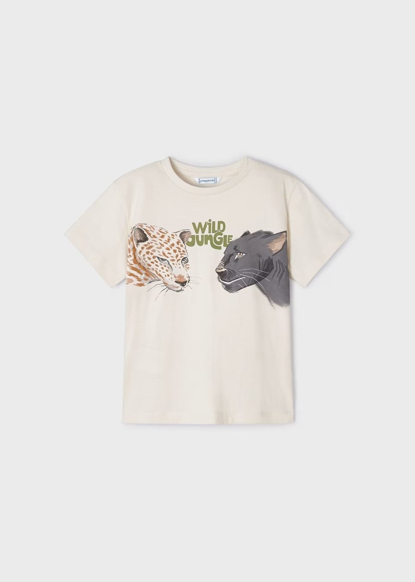 T-Shirt panna bambino Mayoral stampa "WILD JUNGLE!