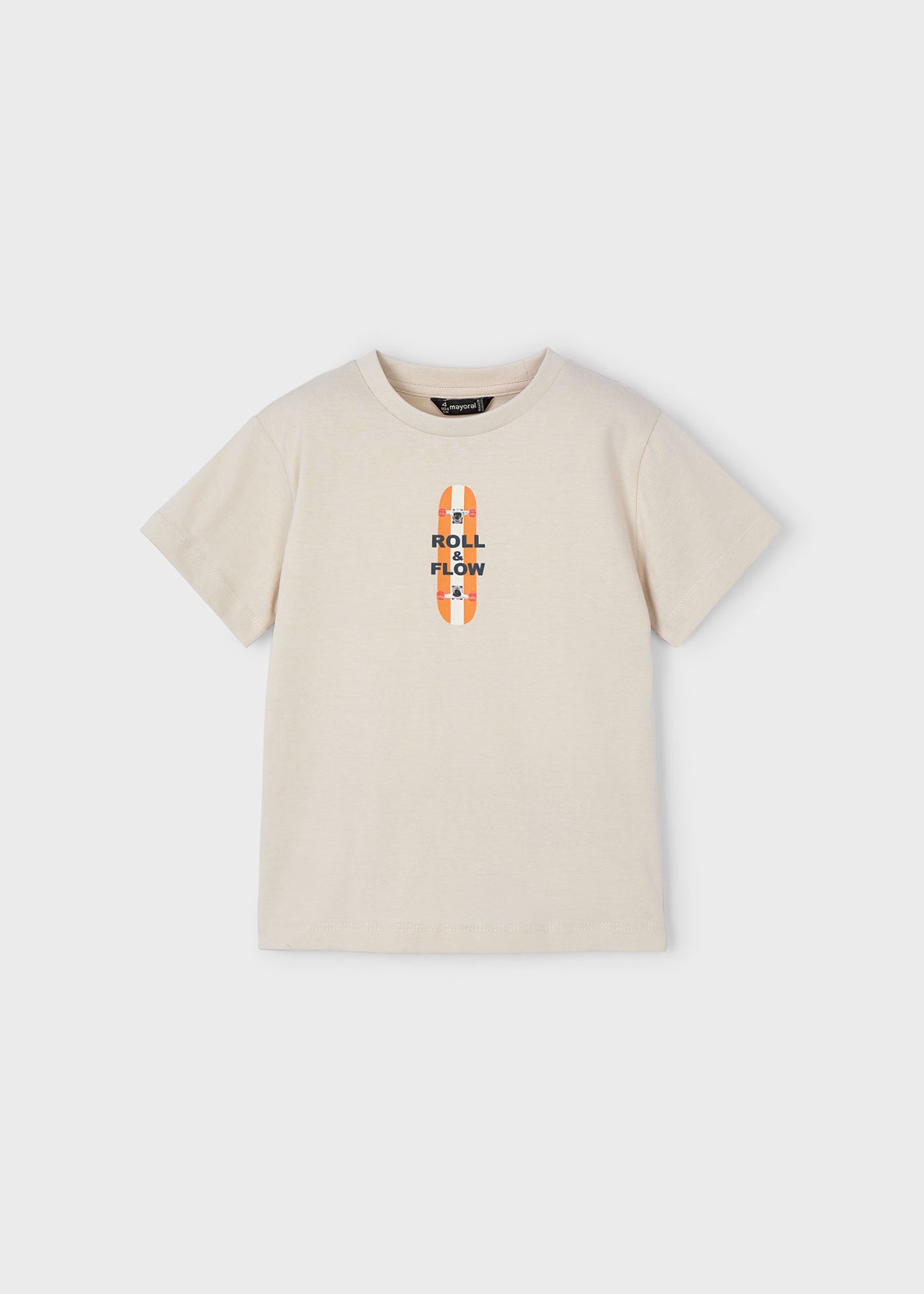 T-Shirt stampa posteriore skateboard bambino Mayoral beige chiaro
