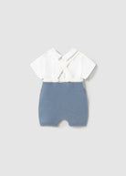 Maglietta manica corta per neonato. Colletto modello camicia. Chiusura con bottoni sulla schiena per facilitare la vestibilità del capo.