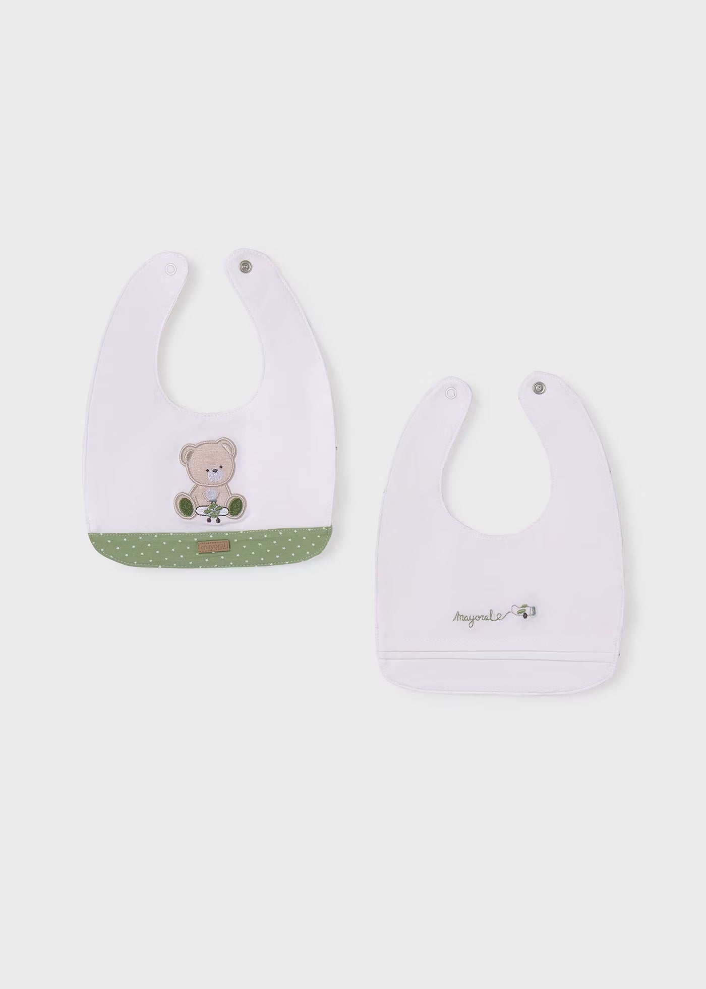 Set di due bavaglini dal design originale che accompagneranno i pasti del tuo/a piccolo/a.