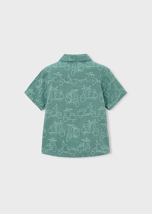 Camicia bambino Mayoral verde fantasia moto vespe