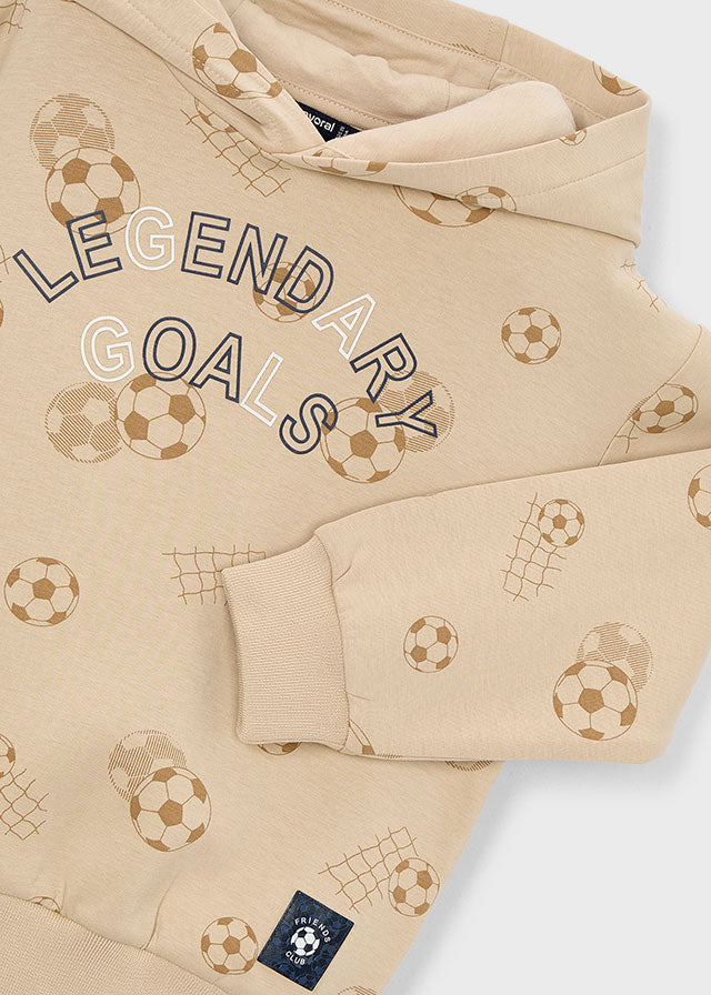 Felpa pullover con cappuccio bambino Mayoral beige palloni da calcio