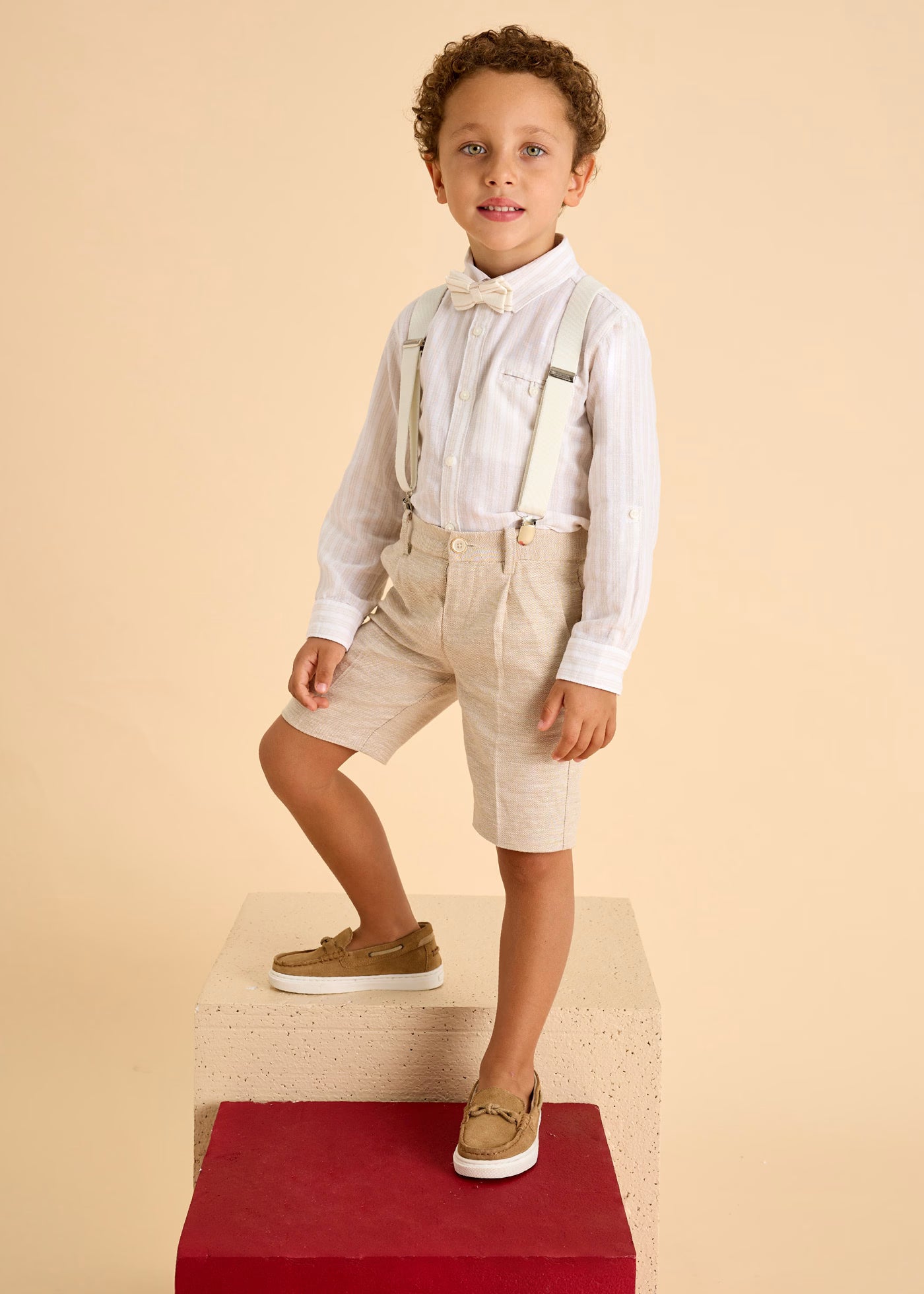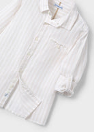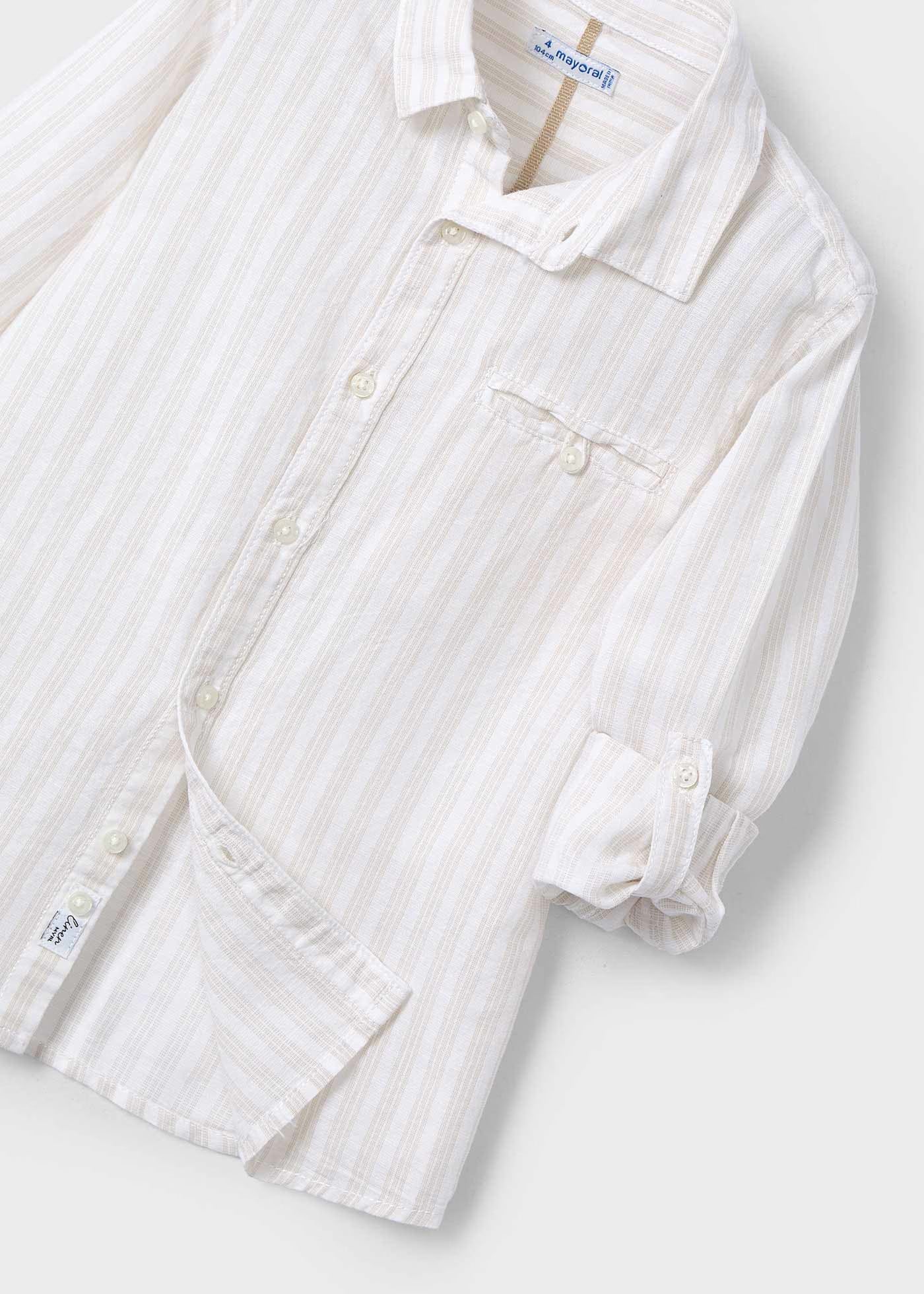 Camicia manica lunga per bambino con fibbia e bottone laterale per accorciare le maniche. Colletto modello camicia. Chiusura con bottoni nella parte anteriore. Tessuto dall'aspetto fresco e moderno di lino. Tasca funzionale nella parte anteriore. Scegliendo i nostri prodotti in cotone, supporti il nostro impegno nell'iniziativa Better Cotton. Il cotone Better Cotton è ottenuto attraverso un sistema di bilancio di massa e non può essere fisicamente ricondotto ai prodotti finali. tuttavia, i produttori di cotone beneficiano della domanda di Better Cotton in volumi equivalenti.