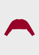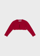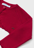 Langarm-Cardigan für Mädchen, ideal passend zu jedem Kleid. Ein-Knopf-Verschluss. Viskose- und Baumwollstoff, weich und angenehm im Griff. Dekorationselemente: gewellter Rand.
