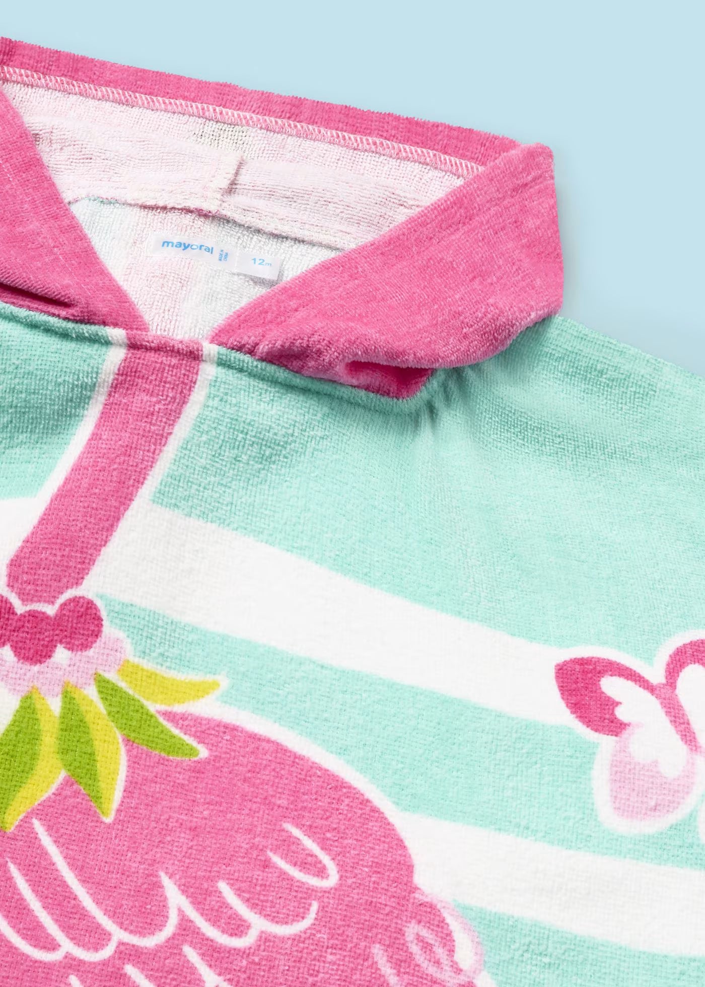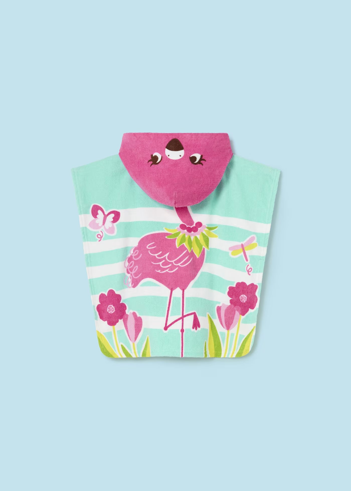 Poncho-Handtuch mit Kapuze aus 100 % Baumwolle für Baby-Mädchen „Flamingo“ Aqua
