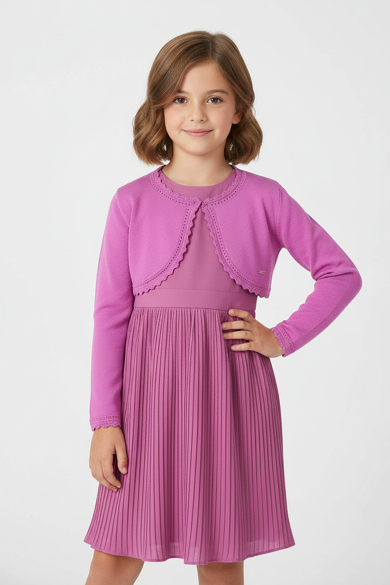 Mädchen-Bolero-Strickjacke im Orchideen-Look, gestrickt von Mayoral