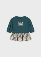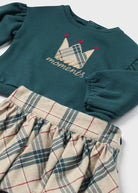 Completo gonna quadri e felpa neonata Mayoral verde e beige