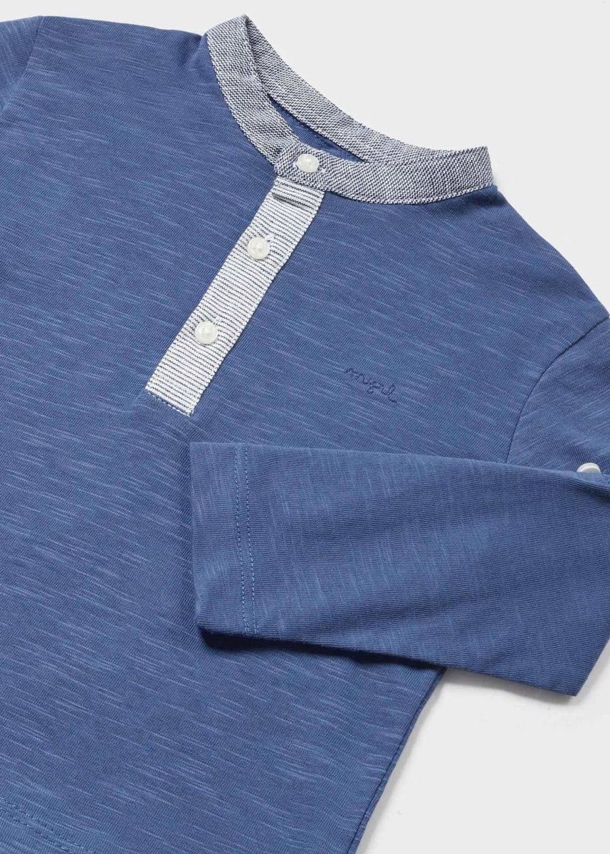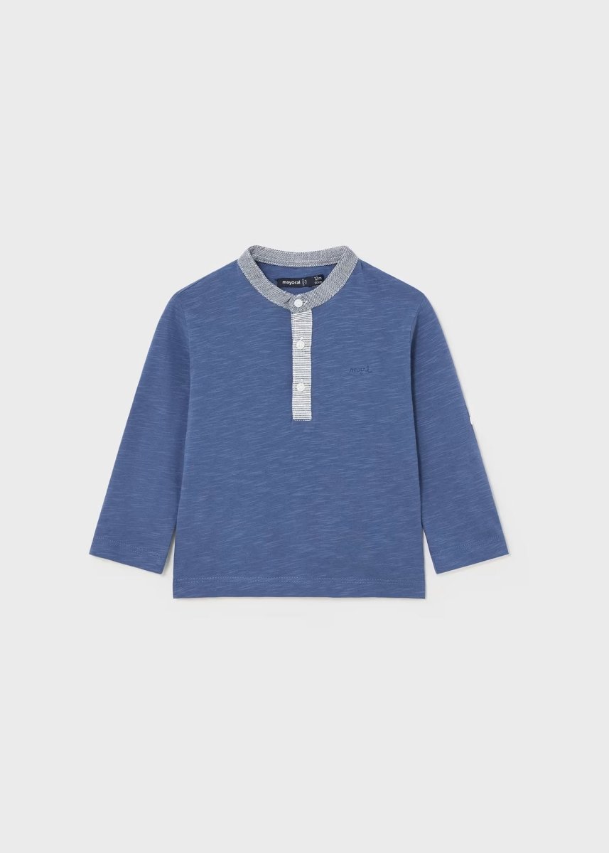 Mayoral indigoblaues T-Shirt aus frischer Baumwolle mit aufrollbaren Ärmeln für Neugeborene