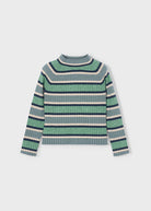 Maglietta lupetto costine viscosa bambina Mayorla righe verde-azzurro-blu
