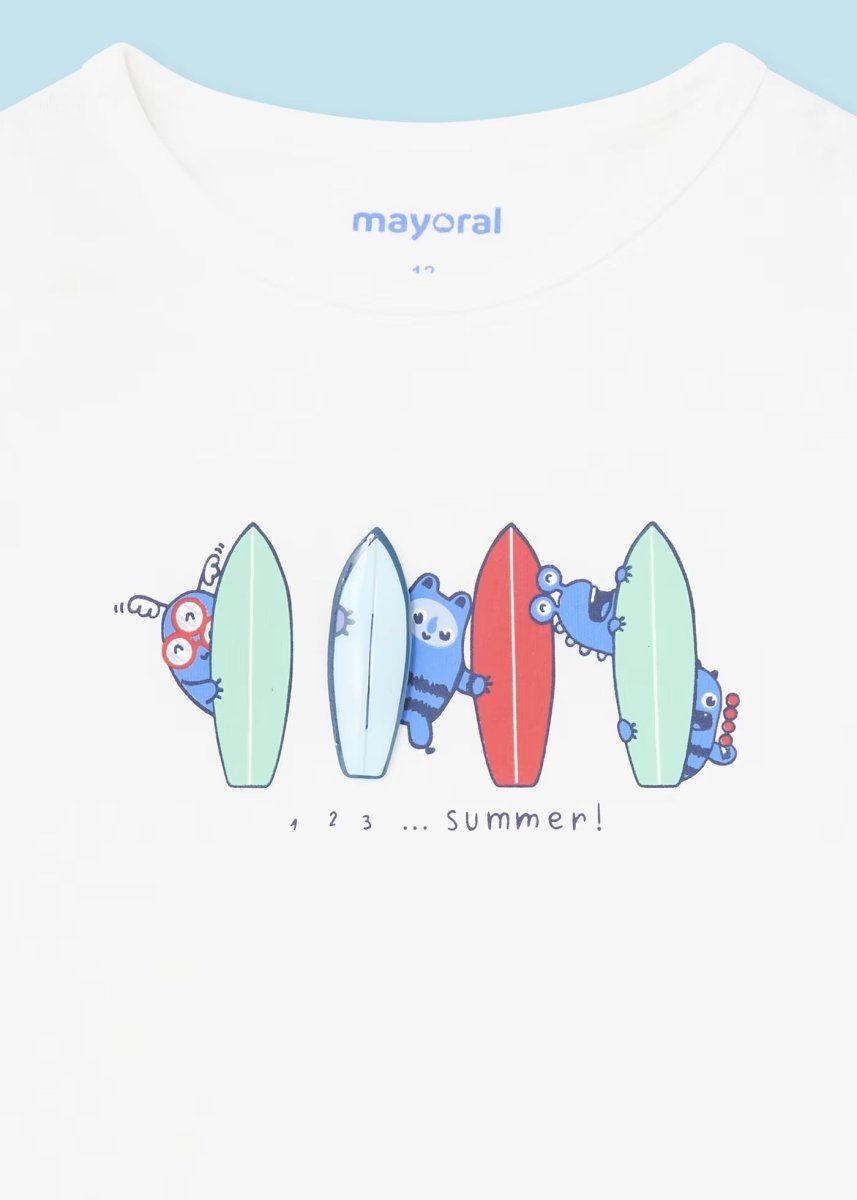 Interaktives ärmelloses T-Shirt aus frischer Baumwolle für Neugeborene Mayoral „1 2 3 Summer“