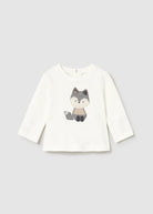 Maglietta manica lunga per neonata. Girocollo. Chiusura con bottoni a pressione nella parte posteriore. Elementi decorativi: applicazione decorativa, Serigrafia (print)