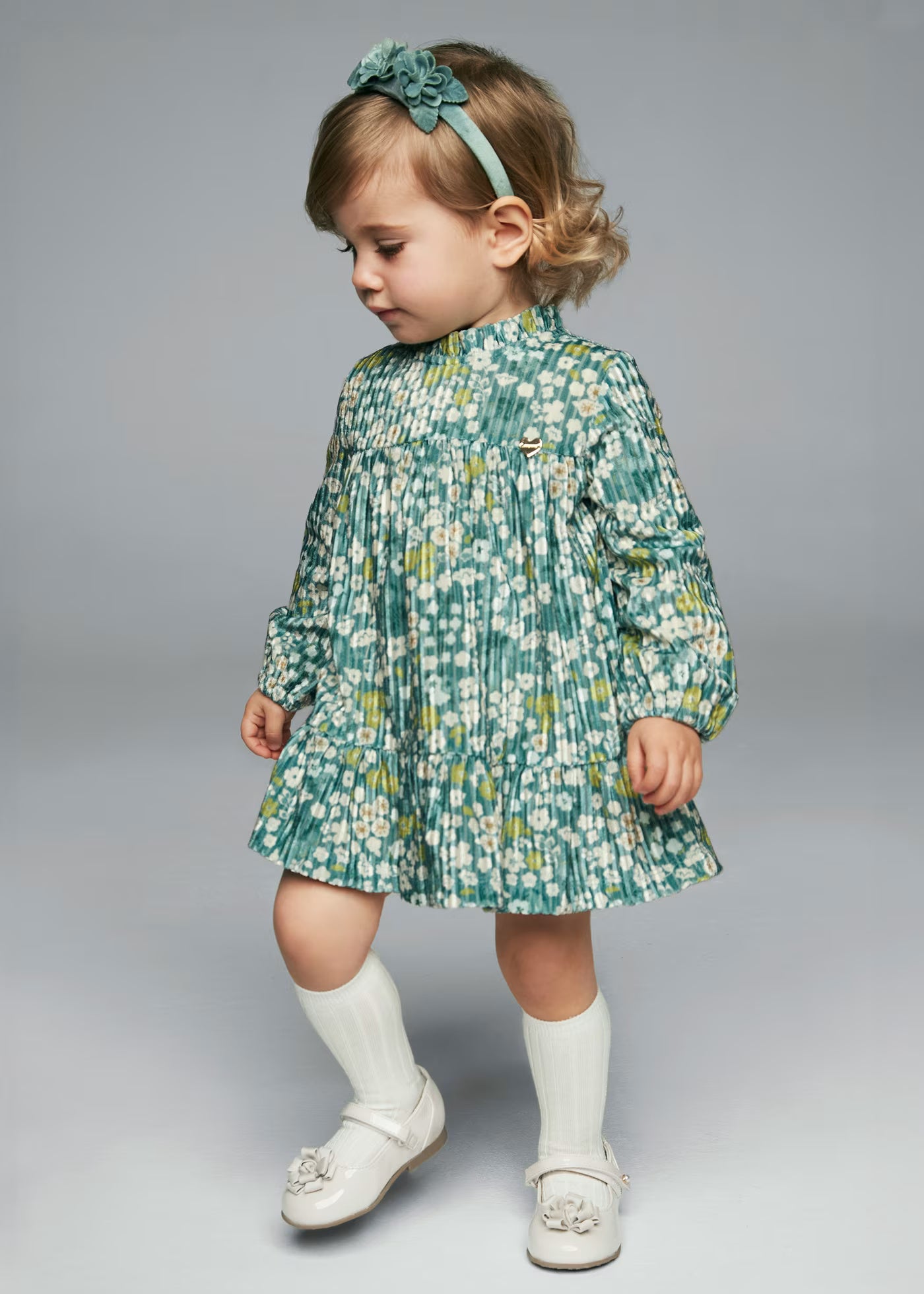 Vestito velluto stampato neonata Mayoral verde floreale