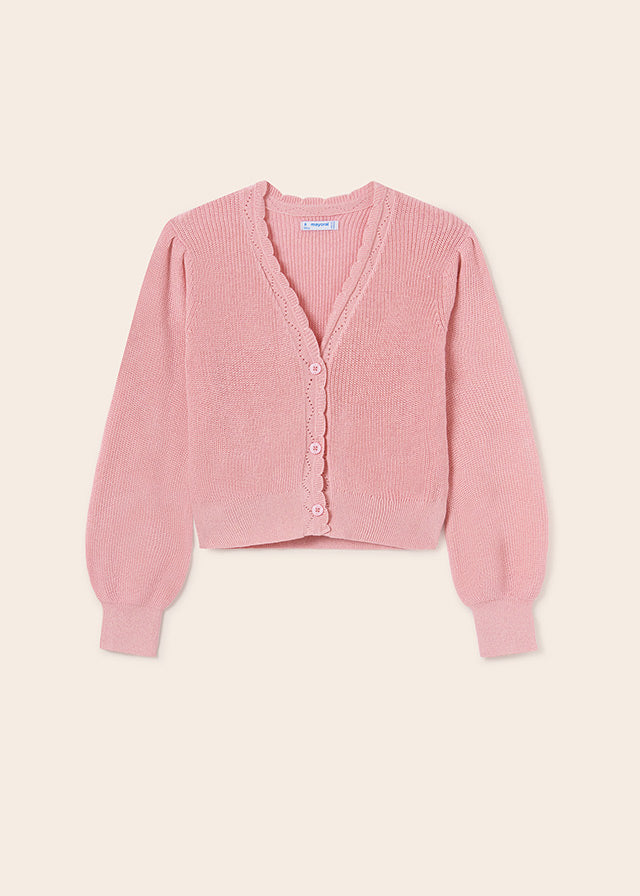 Cardigan tricot maniche a palloncino ragazza mayoral rosa