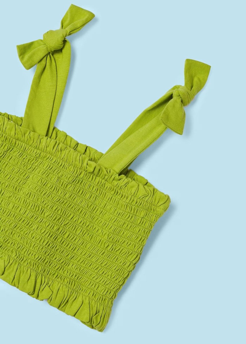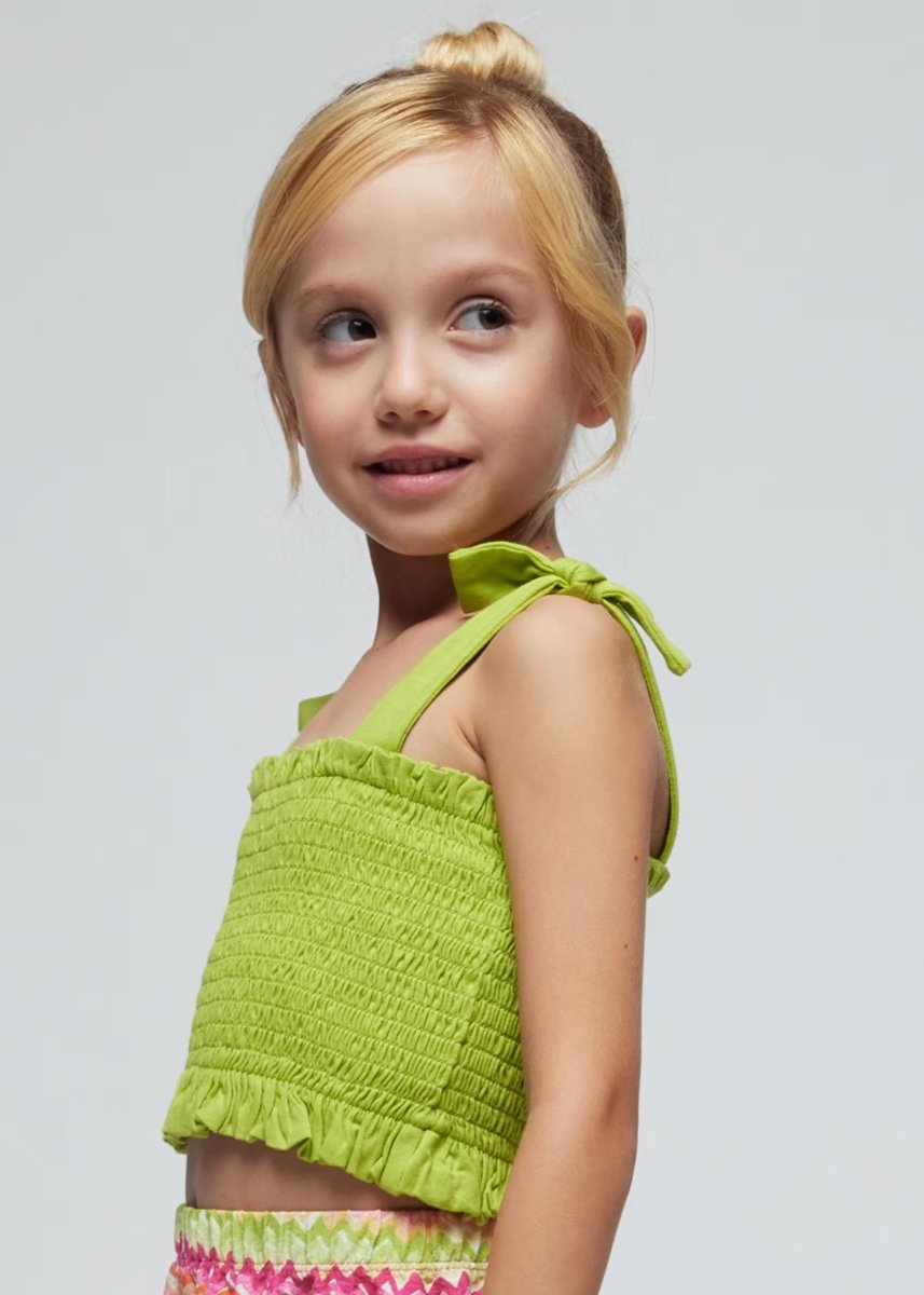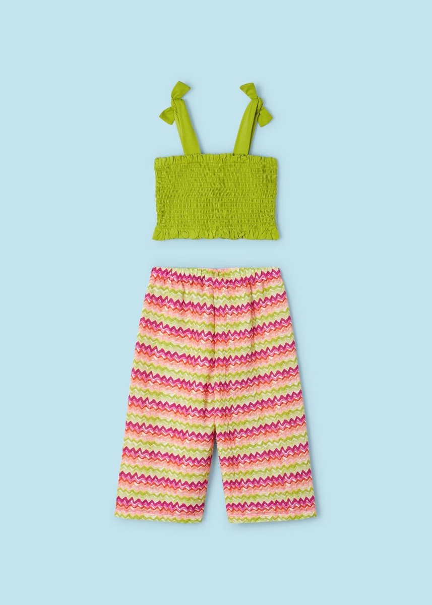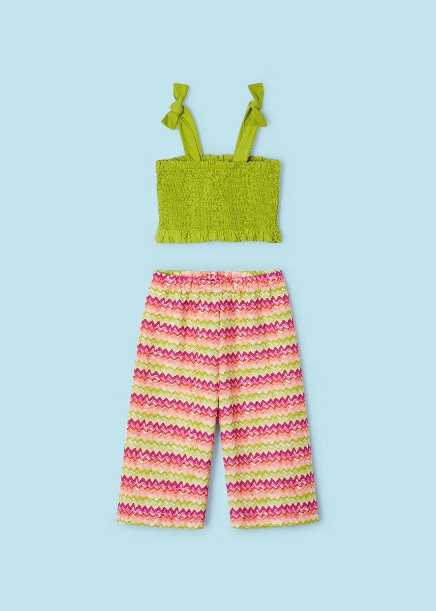 Zweiteiliges gesmoktes Set für Bürgermeistermädchen mit grünem Muster