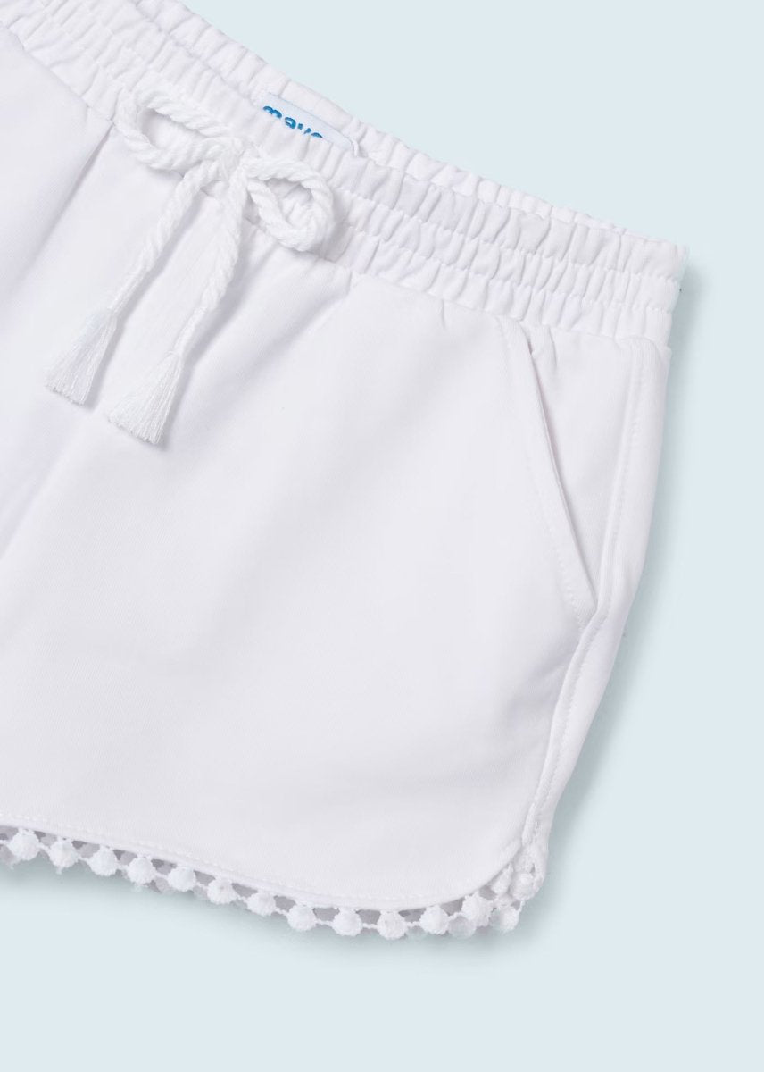Capo ECOFRIENDS enthält Bio-Baumwolle. Shorts im Shorts-Stil für Mädchen. Bund mit verstellbarem innenliegendem Kordelzug. Funktionelle Taschen auf der Vorder- und Rückseite des Kleidungsstücks.