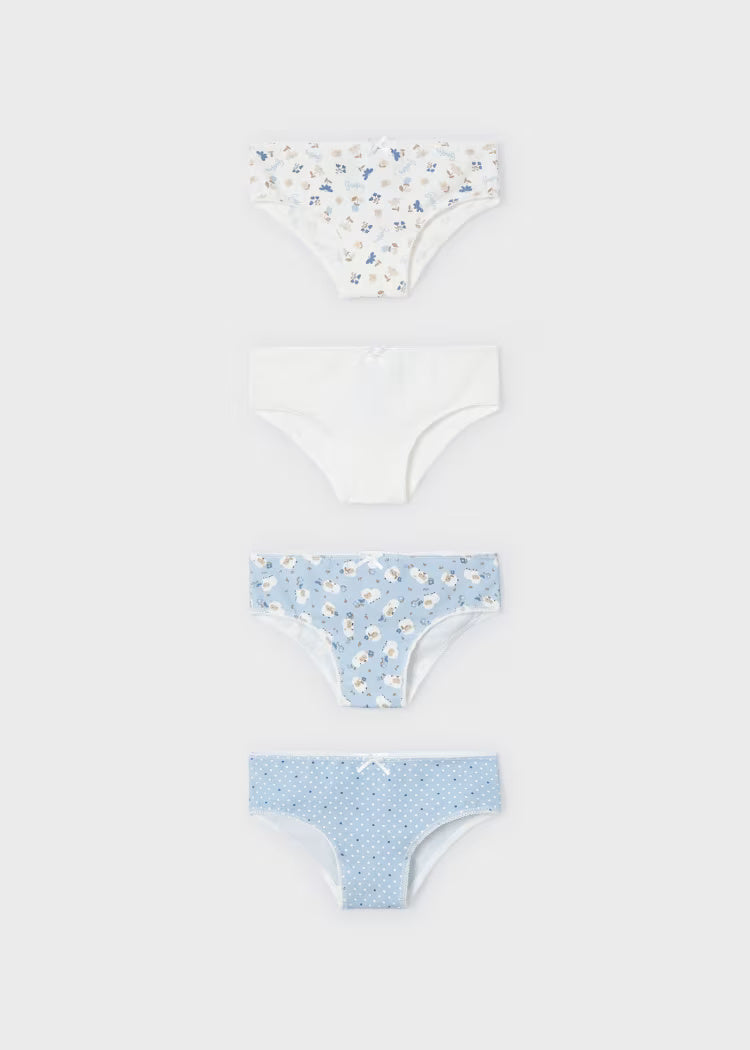 Set 4 mutandine bambina Mayoral fantasia bianco e celeste