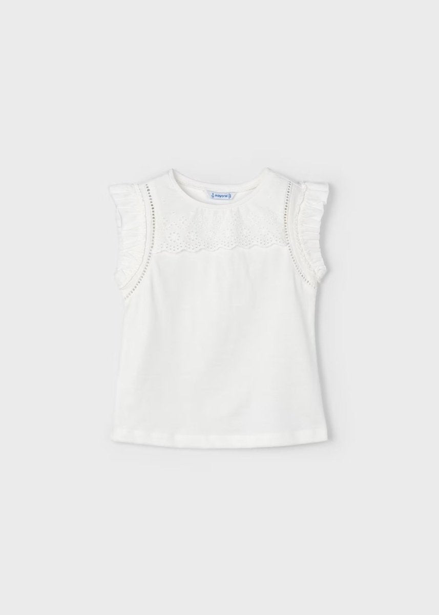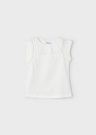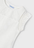 Mayoral ärmelloses, perforiertes T-Shirt aus cremefarbener, frischer Baumwolle für Mädchen