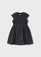 Vestito manica corta per bambina. Girocollo. Design con taglio in vita. Elastico in vita. Modello con riccio.