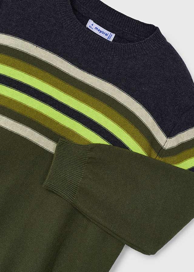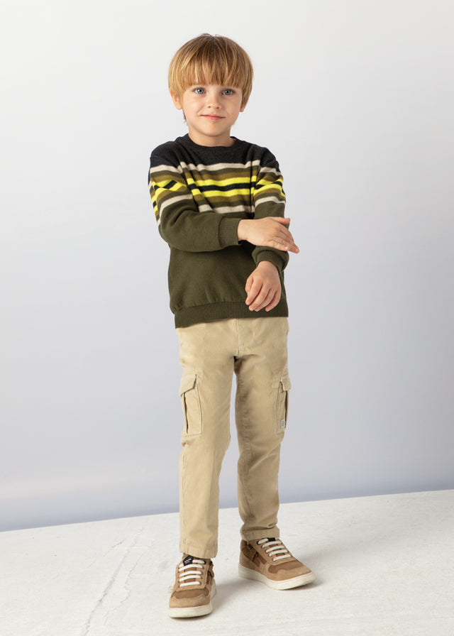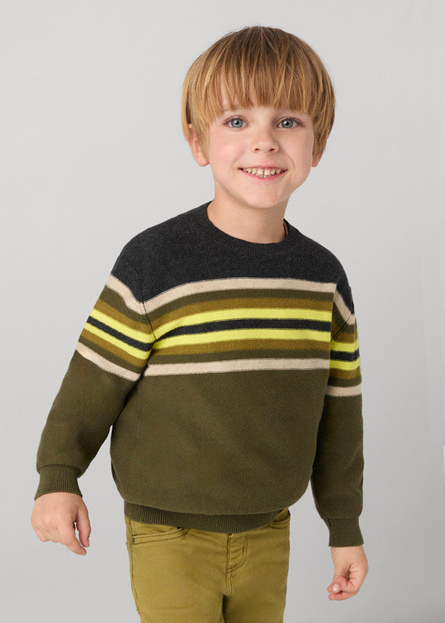 Maglione manica lunga per bambino. Girocollo. Orlo, polsini e colletto elasticizzati per una migliore vestibilità. Trama a righe.