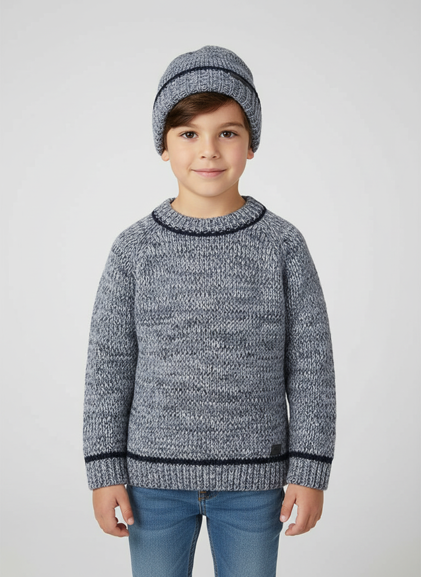 Maglione con cappello bambino Mayoral grigio mix azzurro