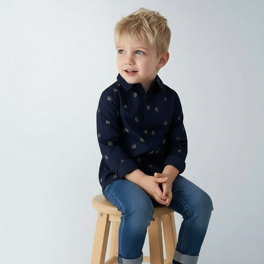 Blaues Langarmshirt von Mayoral für Kinder mit Fahrradmuster