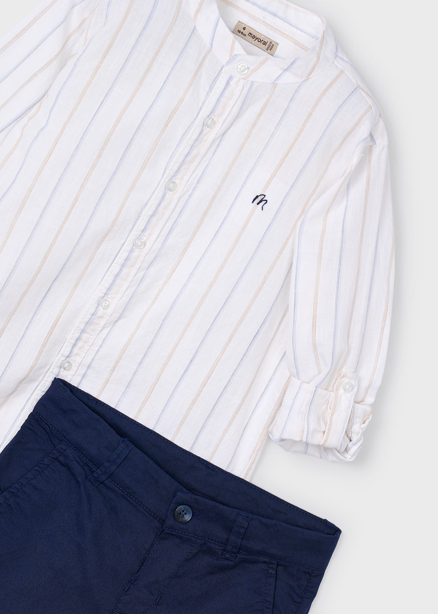 Completo con bermuda e camicia bambino Mayoral crema