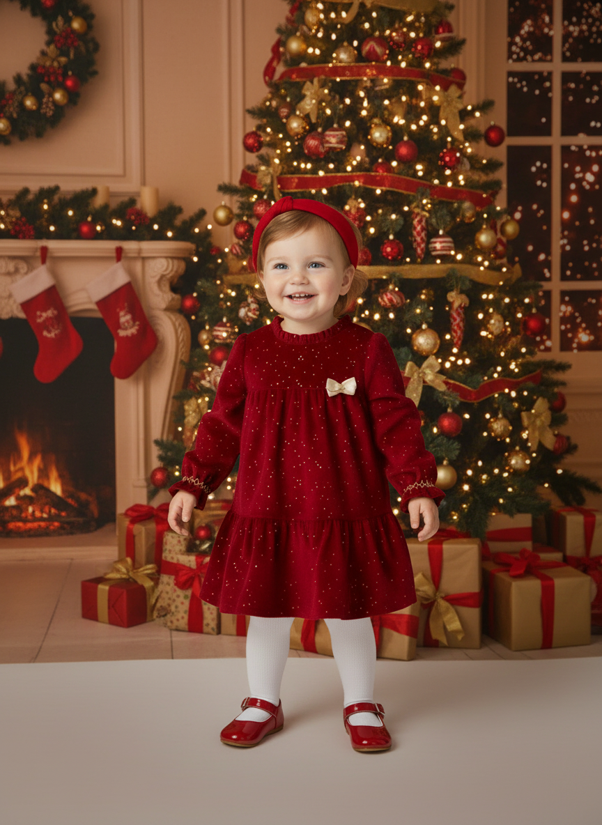 Mayoral glitzerndes rotes Samtkleid für Mädchen mit Schleife