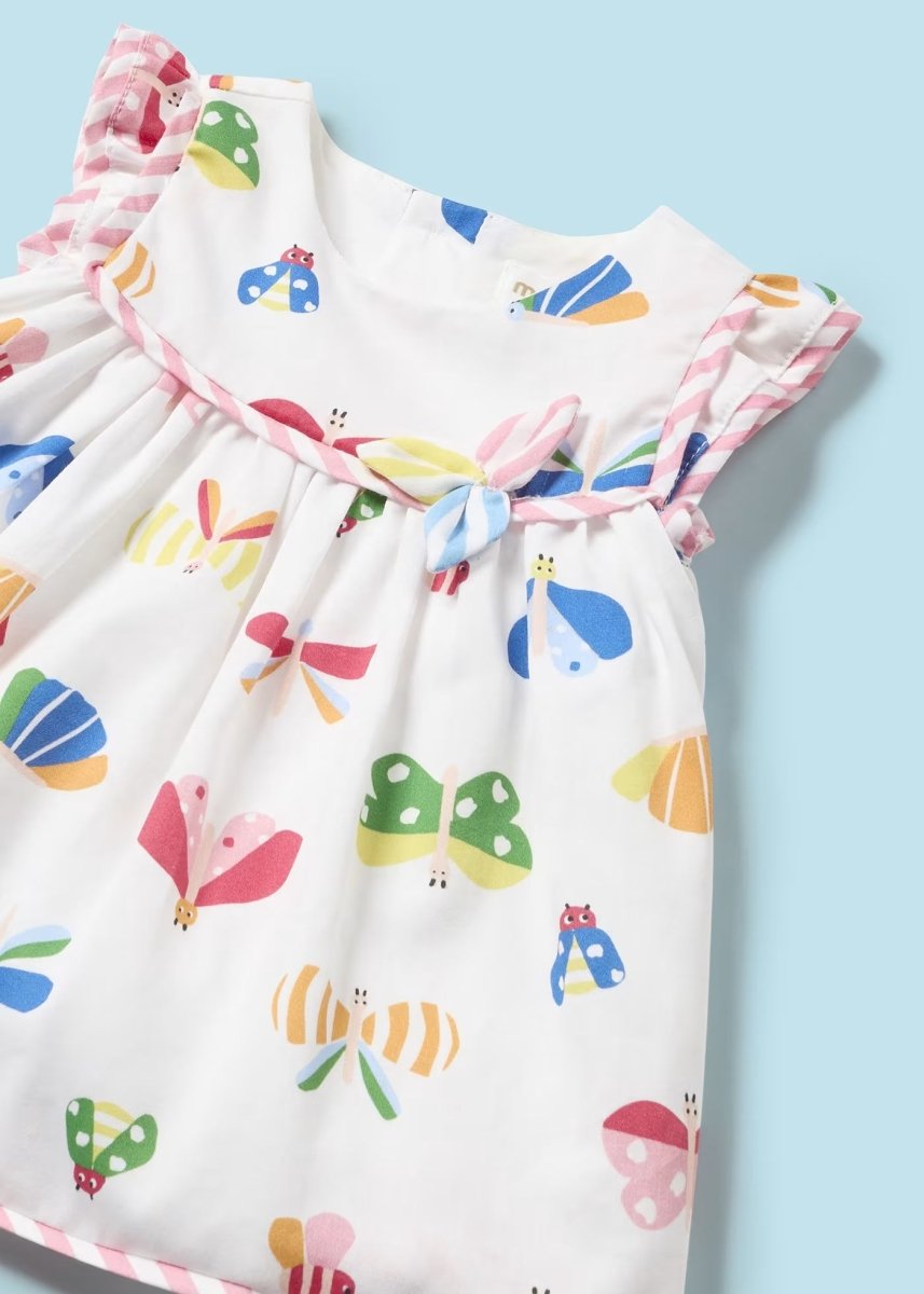 Mayoral-Schmetterlingskleid für Neugeborene mit Windelüberzug aus Satin