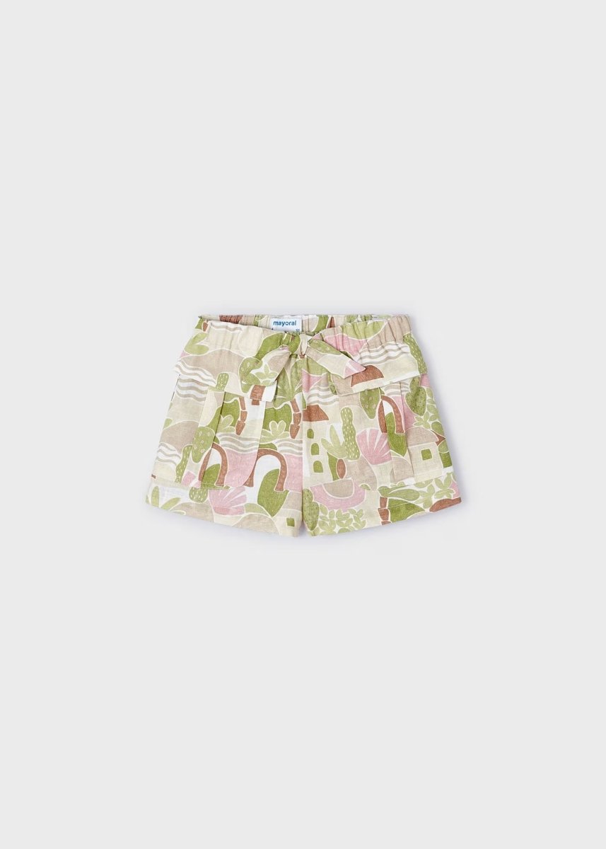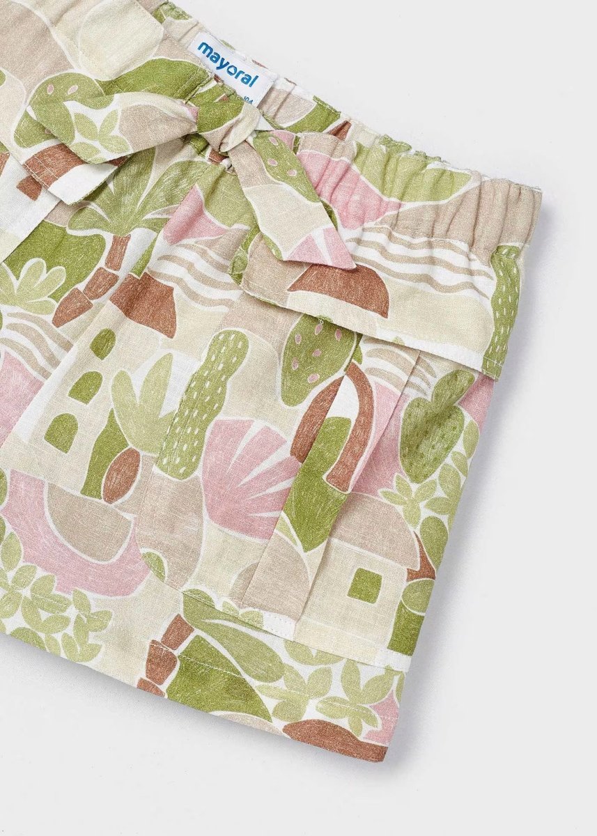 Pantaloncino in tela ragazza Mayoral fantasia color mandorla