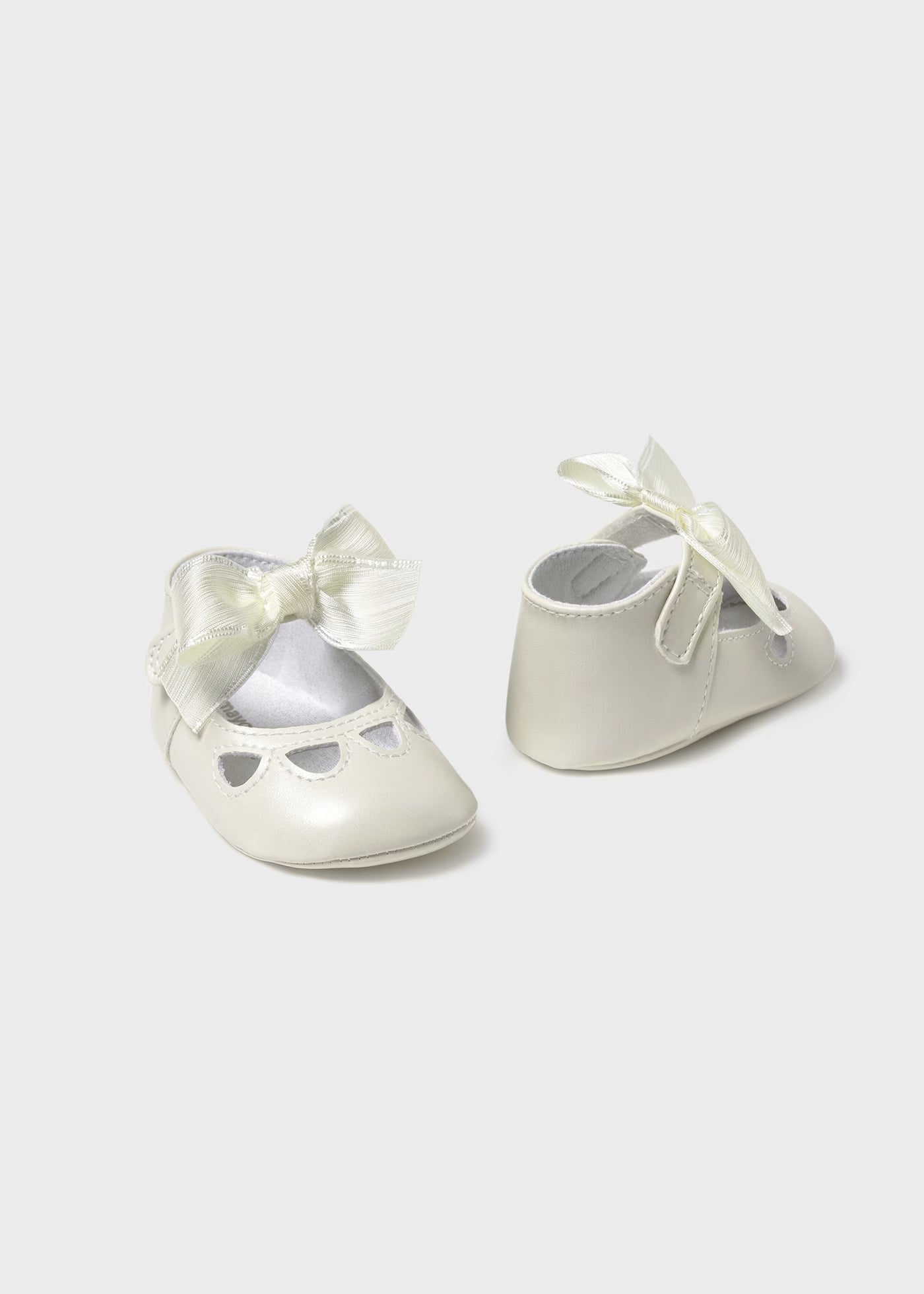 Scarpe ballerine cerimonia fiocco neonata Mayoral Newborn madreperla