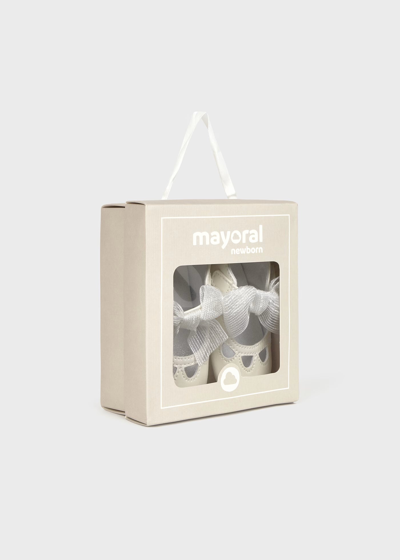 Scarpe ballerine cerimonia fiocco neonata Mayoral Newborn madreperla