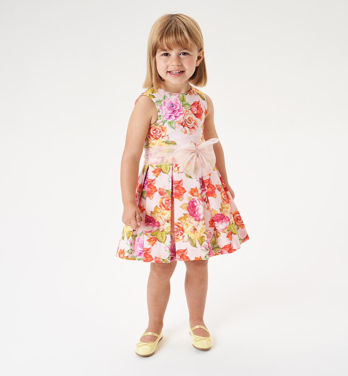 Abito rosa floreale bambina iDO con fiocco in tulle