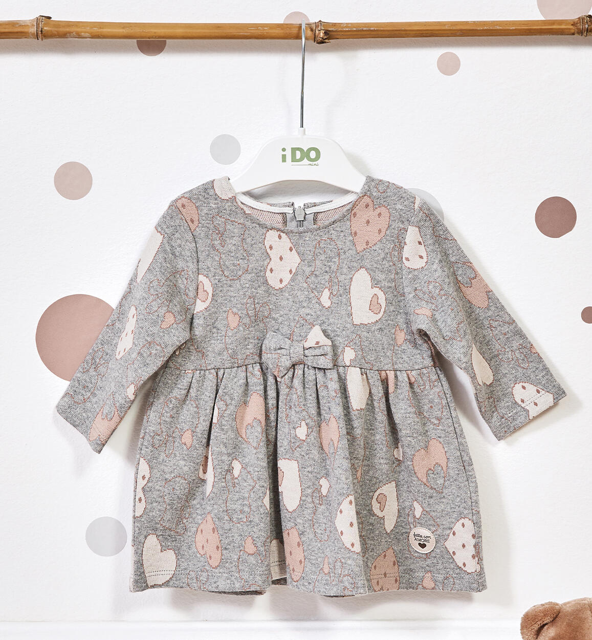 Abito per neonata iDO realizzato in tessuto jacquard, fantasia all over. Il modello presenta apertura sul retro con zip invisibile. Lunghezza sopra al ginocchio. Scegliendo i nostri prodotti in cotone, sostieni il nostro investimento nella missione Better Cotton. La fornitura di questo prodotto avviene tramite un sistema di bilancio di massa e potrebbe non contenere Better Cotton.