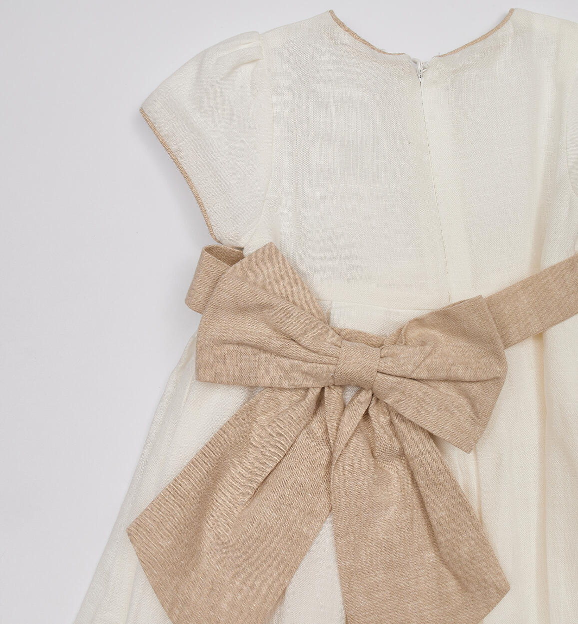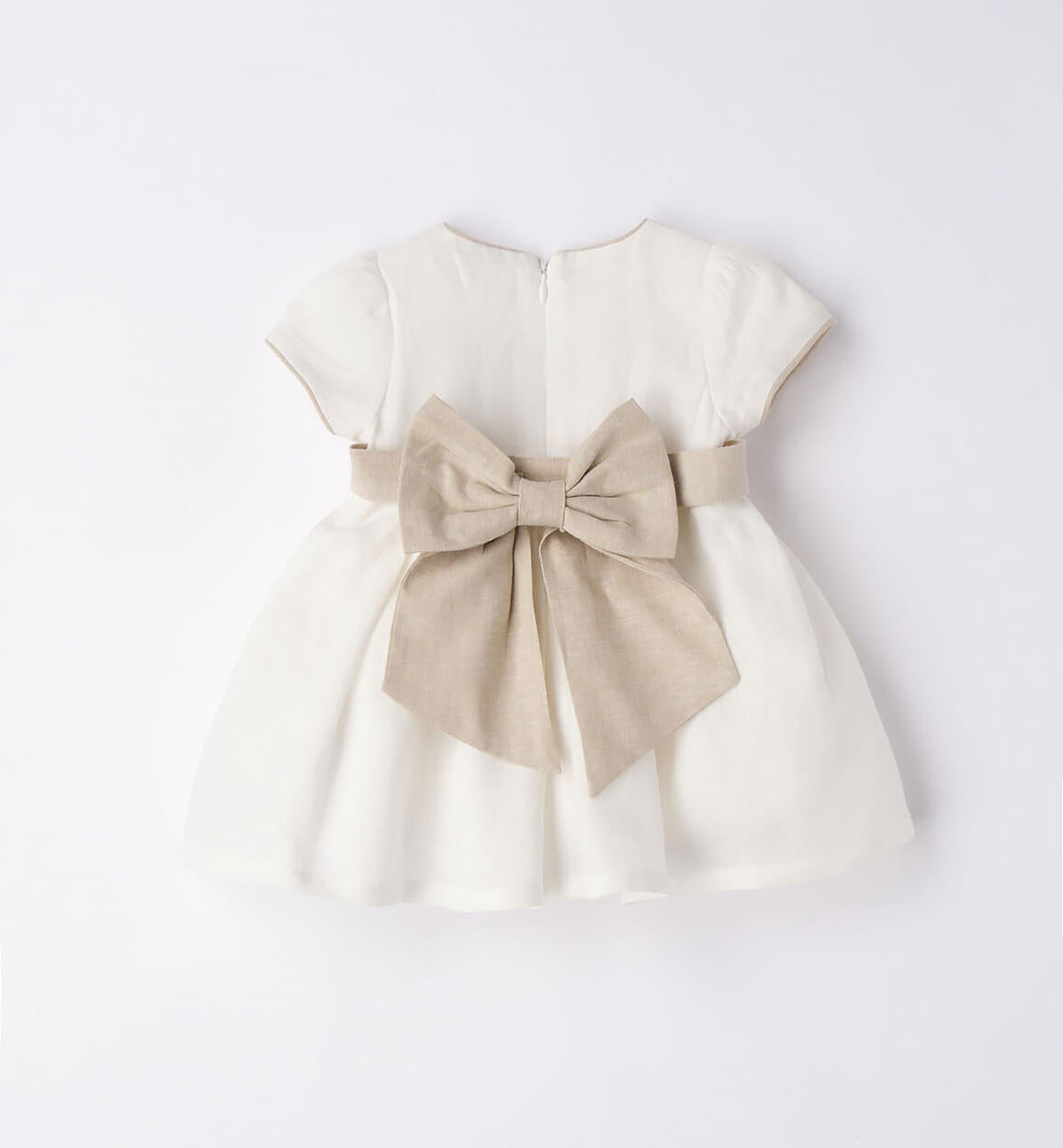 Abito cerimonia in lino neonata iDO retro fiocco beige