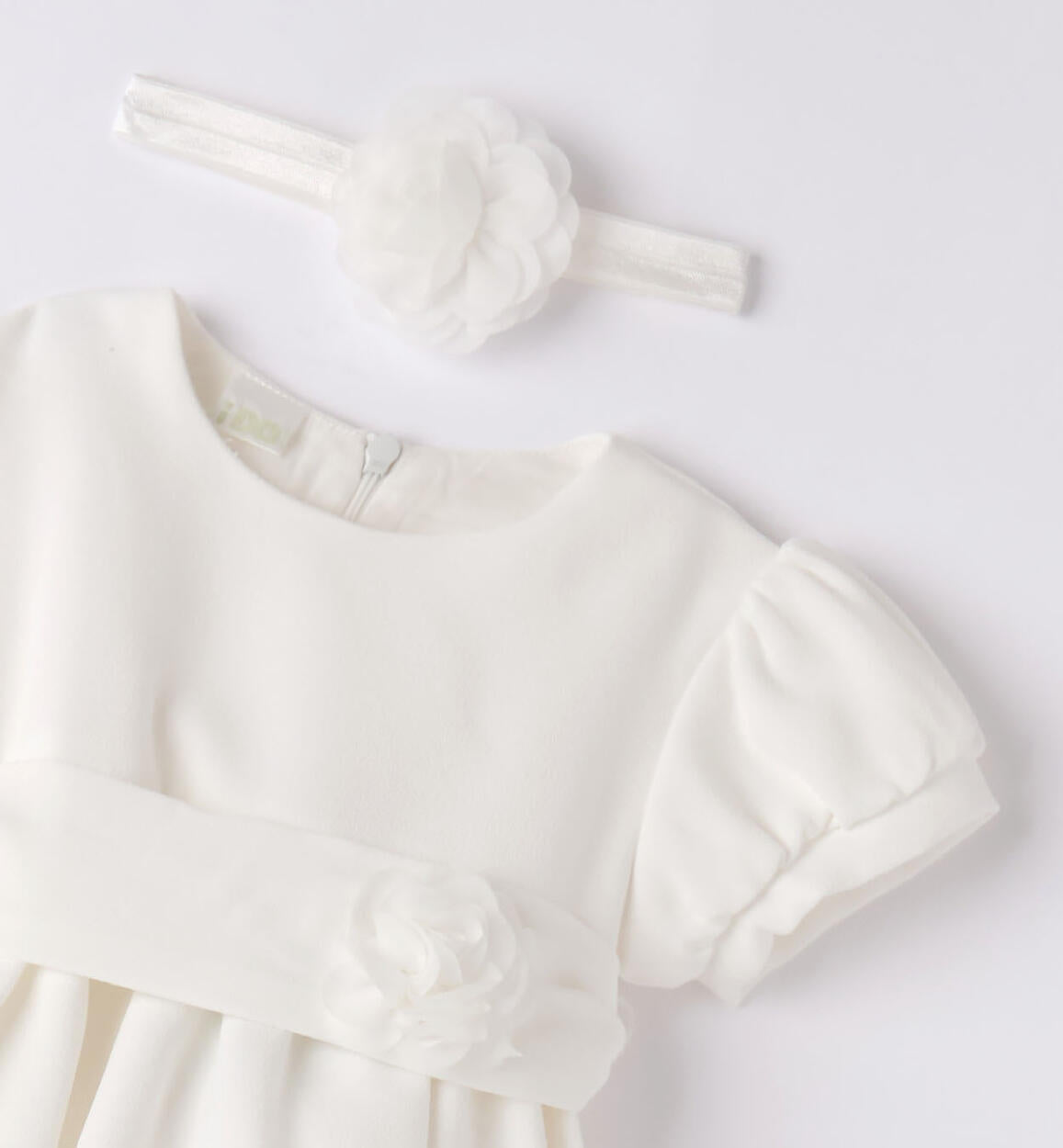 Abito cerimonia neonata iDO in crèpe panna con fascetta