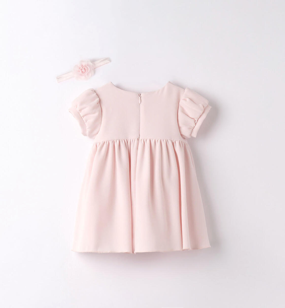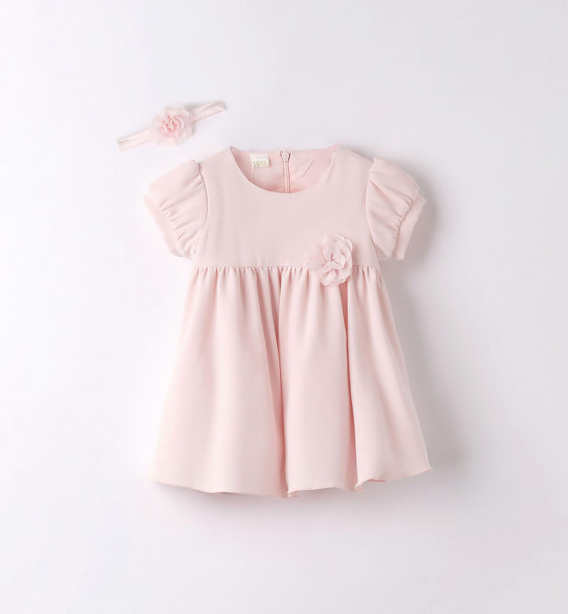 Abito cerimonia neonata iDO in crèpe rosa con fascetta